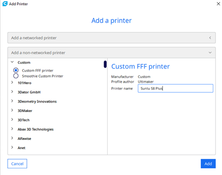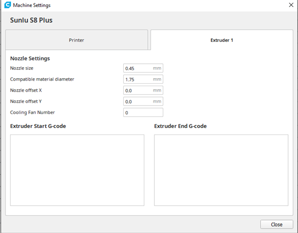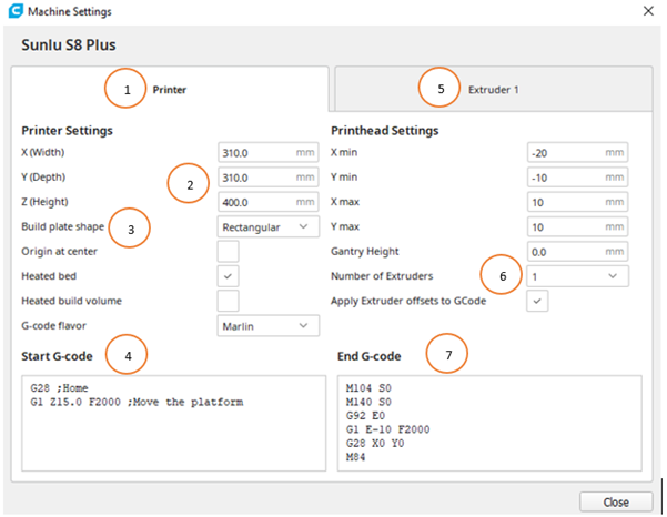 3- Paramétres de la Sunlu S8 Plus sur Cura