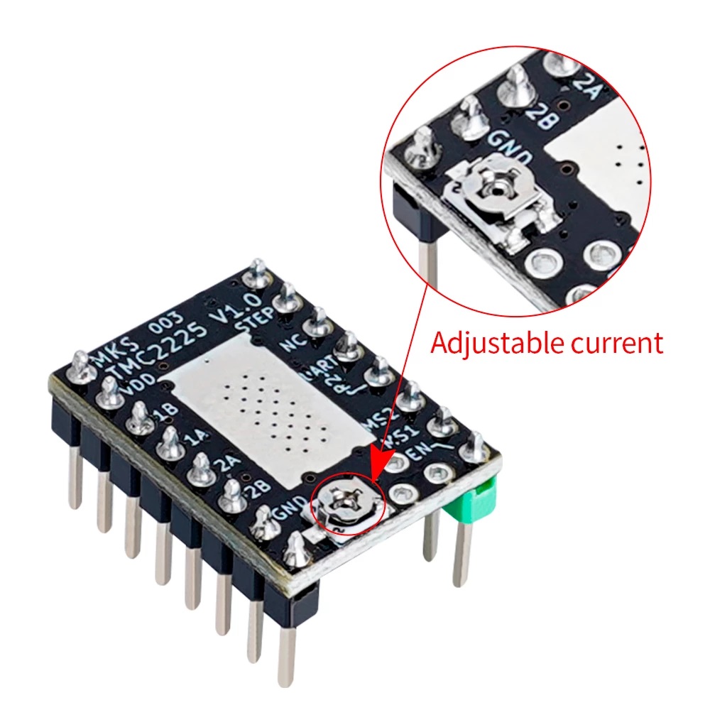 It has a better price than tmc2208. What’s more, a larger heatsink contributes to its better heat dissipation performanceThe only difference between TMC2225 and TMC2208 is package.The package of TMC2225 is HTSSOP,and the package of TMC2208 is QFN. It can replace TMC2208 and TMC2209 completely.