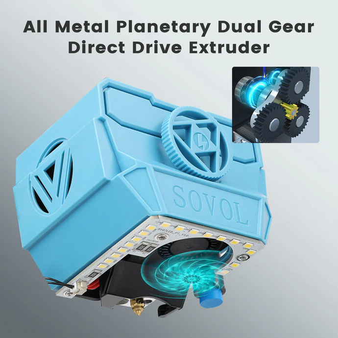 Sovol’s Self-developed All Metal Direct Drive Extruder with dual gear, provides the SV07 Plus with a higher drive ratio and a lighter motor, making extrusion more accurate and printing flexible and elastic material easier.
