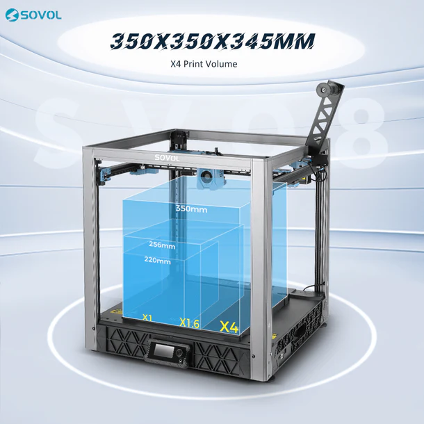 Avec son espace d’impression de 350 x 350 x 345 mm, la SV08 est parfaite pour des projets ambitieux, qu’il s’agisse de prototypes volumineux, d’objets de design complexes ou de décorations uniques.